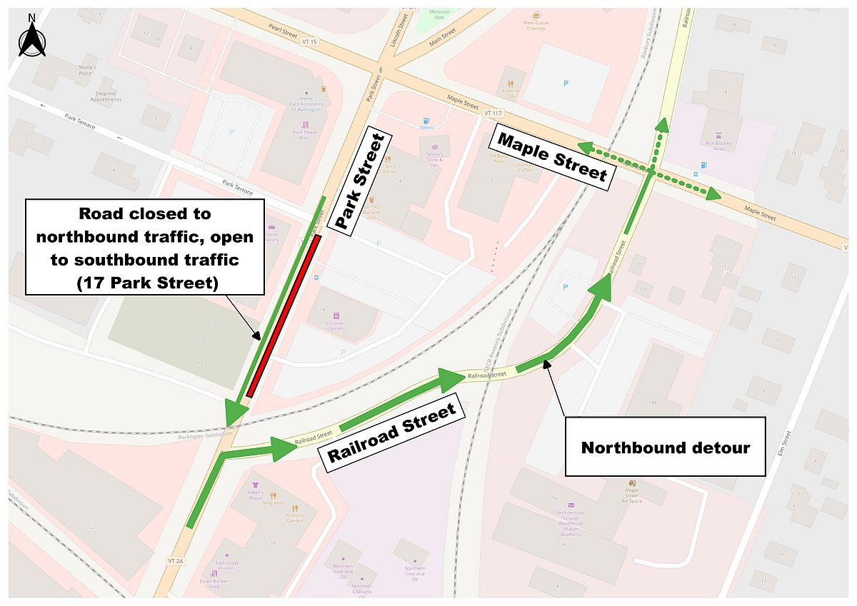 This closure will not affect southbound traffic, allowing drivers to continue south on Park Street as usual. A detour will be posted for northbound travelers, redirecting them onto Railroad Street (the Crescent Connector).